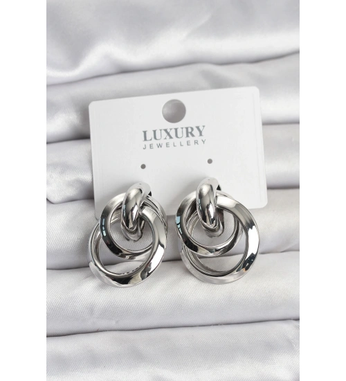 Gümüş Renk Halka Model Pirinç Kadın Küpe