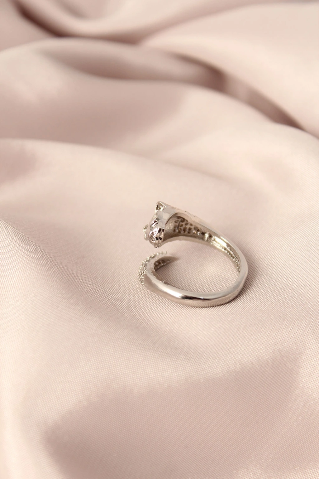 Gümüş Renk Metal Zirkon Taşlı Kaplan Model Ayarlanabilir Kadın Yüzük