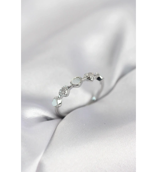 Gümüş Renk Minimal Kalp Model Zirkon Taşlı Pirinç Kadın Yüzük