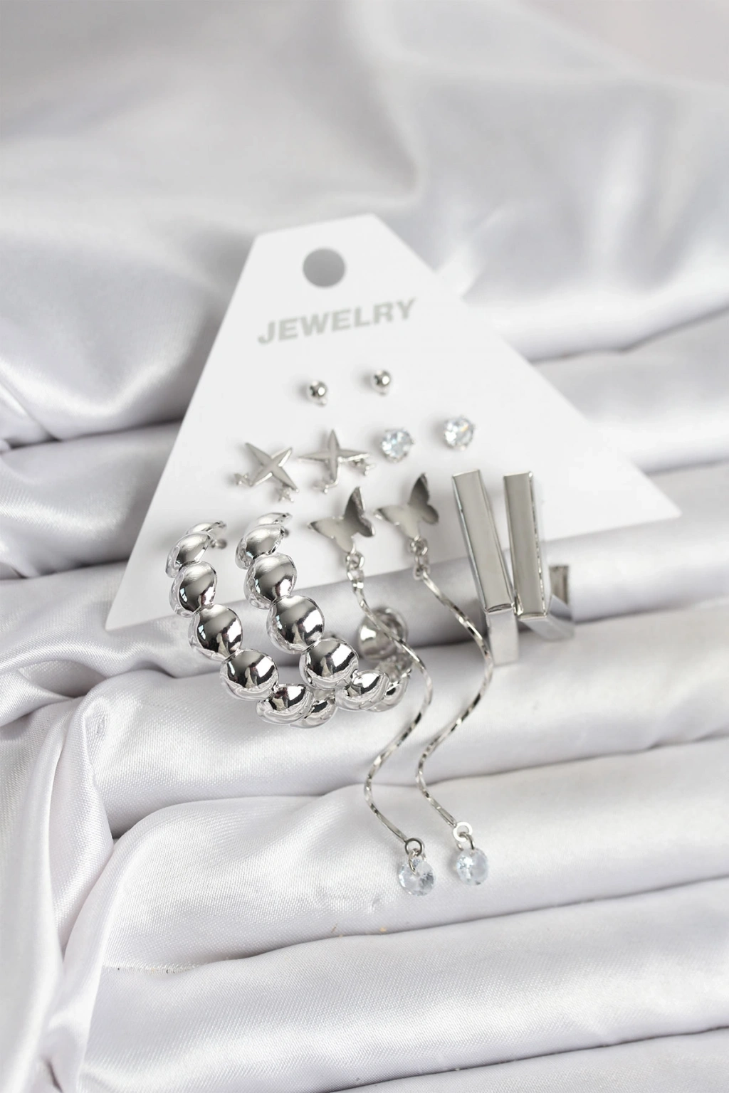 Gümüş Renk Pirinç 6'lı Kadın Küpe Seti
