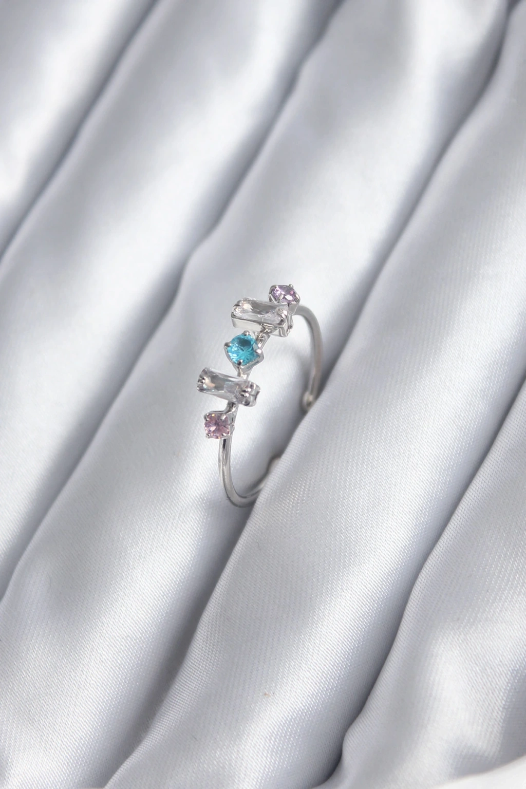 Gümüş Renk Renkli Zirkon Taşlı Kadın Yüzük