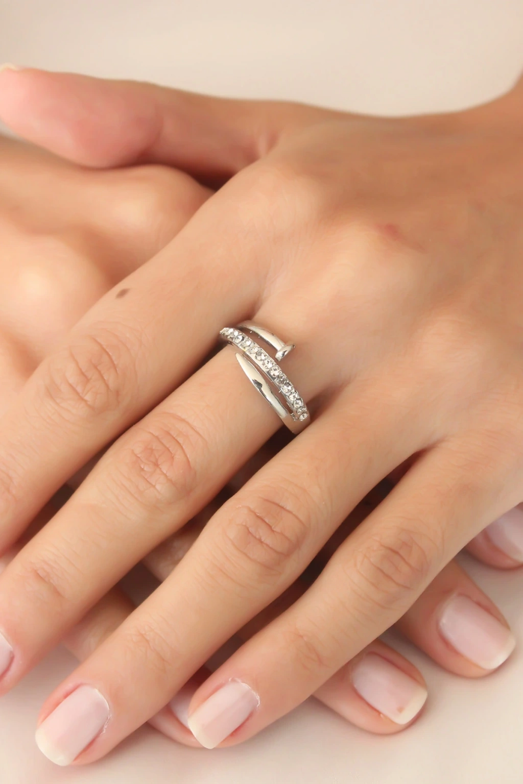 Gümüş Renk Taşlı Çivi Ayarlanabilir Kadın Yüzük