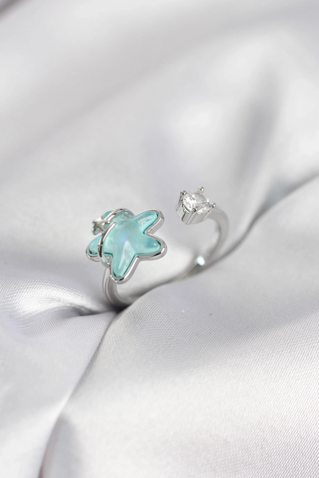 Gümüş Renk Turkuaz Yıldız Model Kadın Yüzük