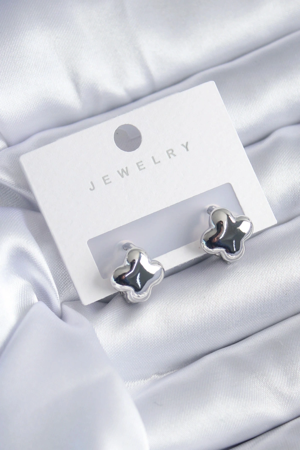 Gümüş Renk Yonca Model Pirinç Kadın Küpe