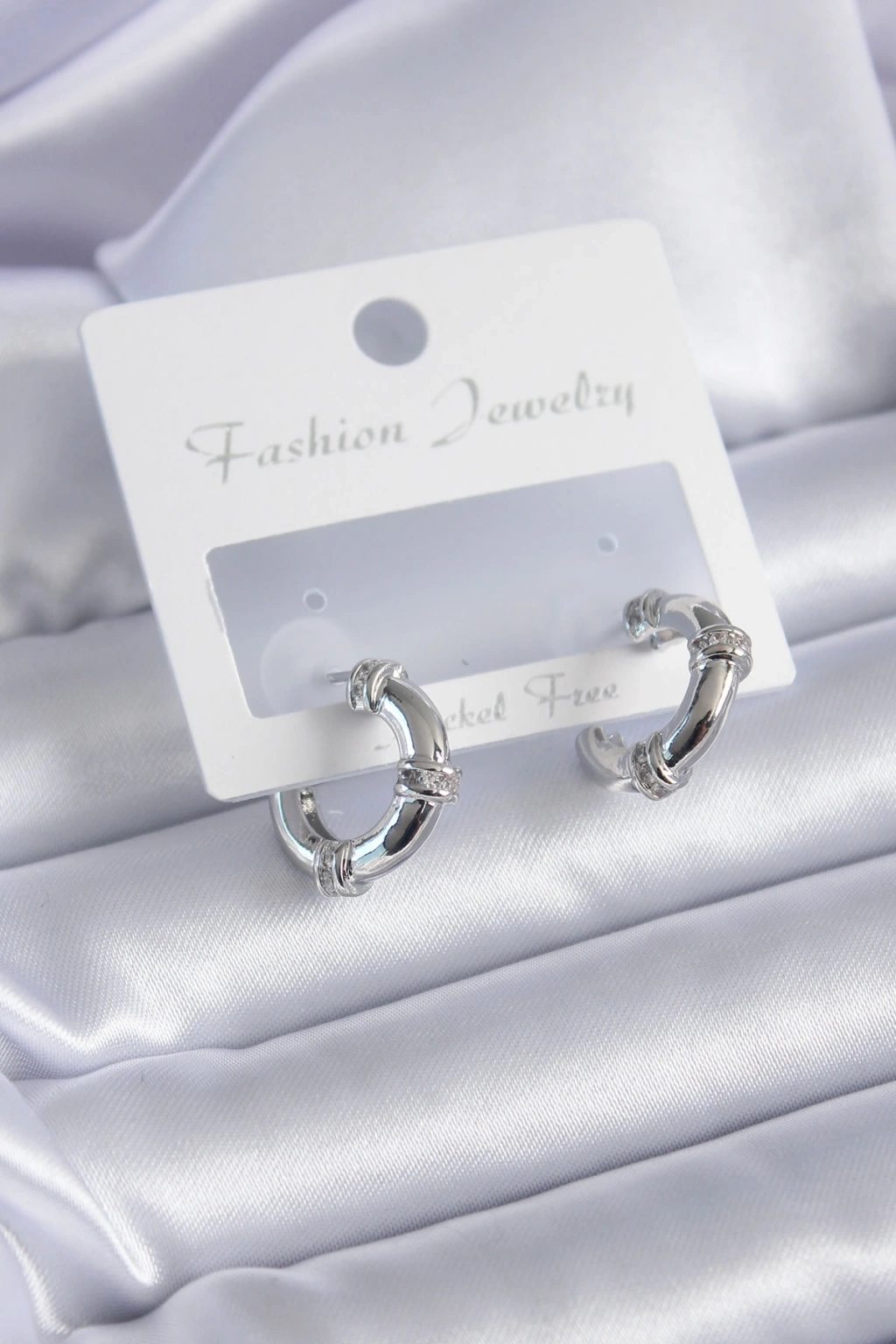 Gümüş Renk Zirkon Taşlı Halka Model Pirinç Kadın Küpe