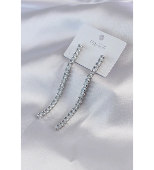 Gümüş Renk Zirkon Taşlı Kadın Küpe