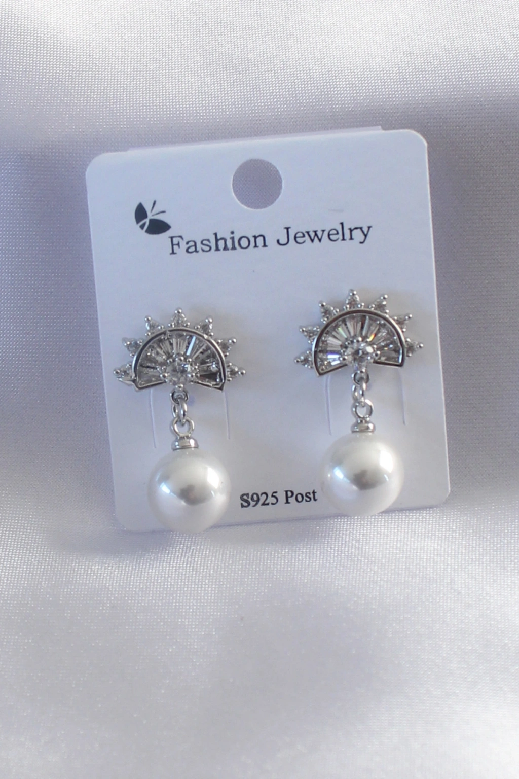 Gümüş Renk Zirkon Taşlı Sallantı İnci Model Kadın Küpe