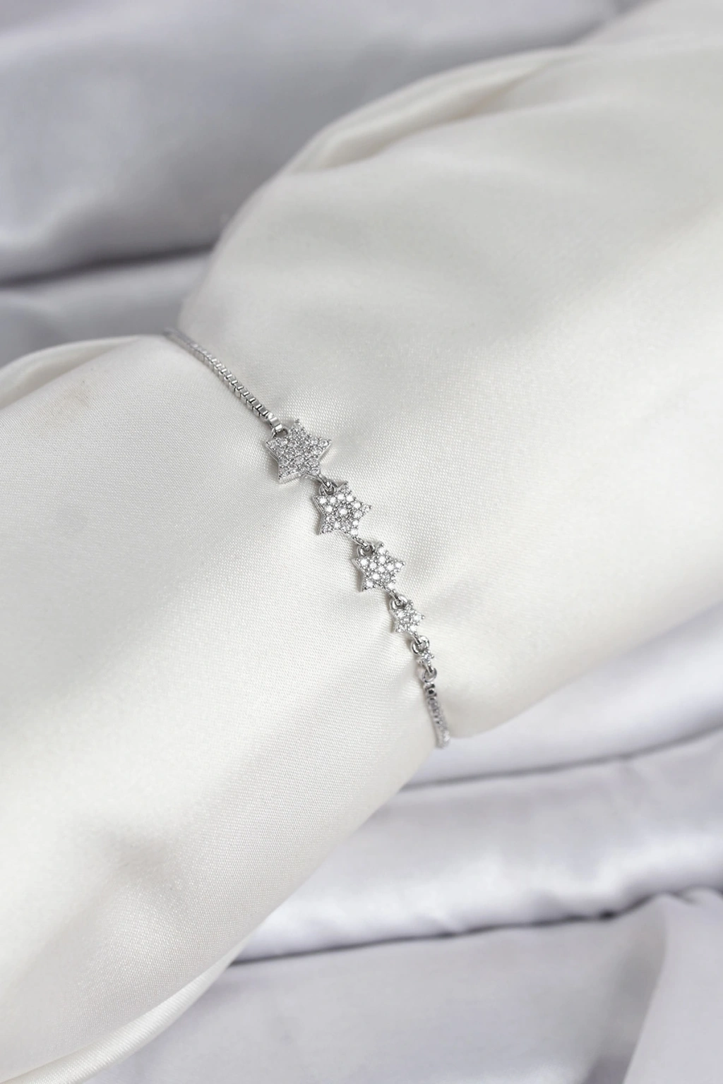 Gümüş Renk Zirkon Taşlı Yıldız Model Asansörlü Kadın Bileklik