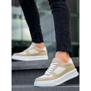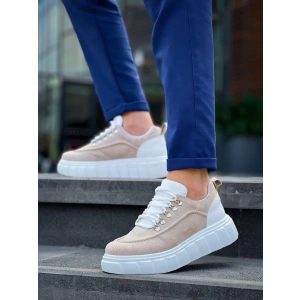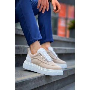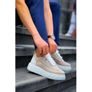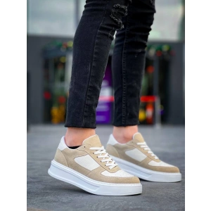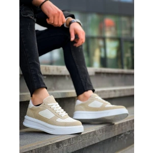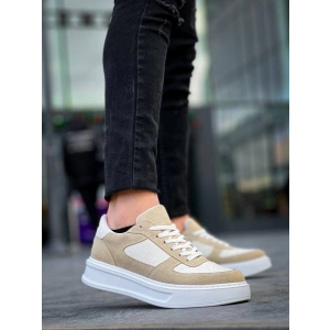 KB-X10 Kuback Bej Süet Beyaz Yüksek Taban Günlük Spor Ayakkabı