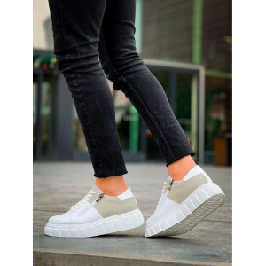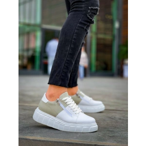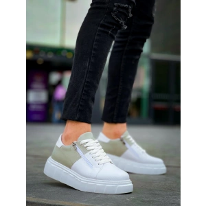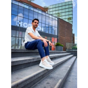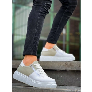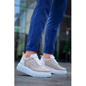 KB-X155 Kuback Beyaz Cilt Bej Süet Detaylı Beyaz Yüksek Taban Günlük Spor Ayakkabı