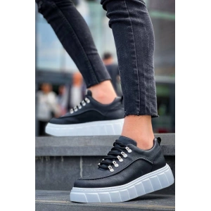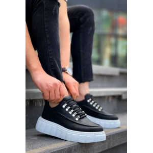 KB-X155 Kuback Siyah Cilt Detaylı Beyaz Yüksek Taban Günlük Spor Ayakkabı