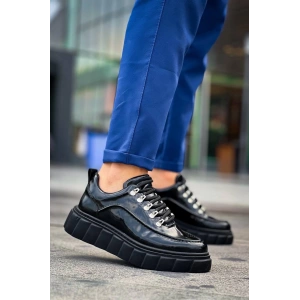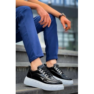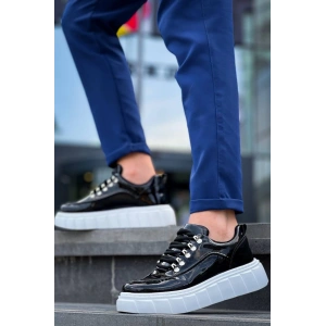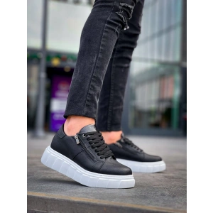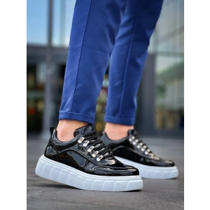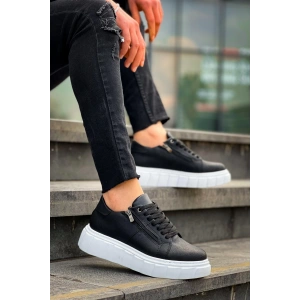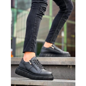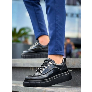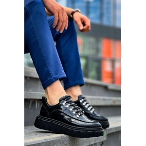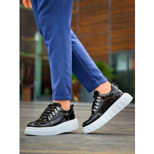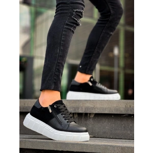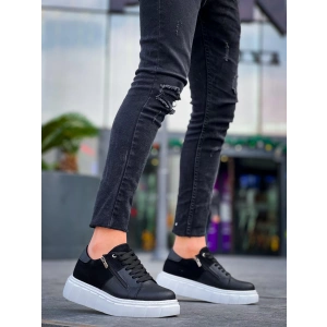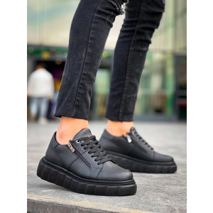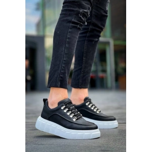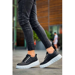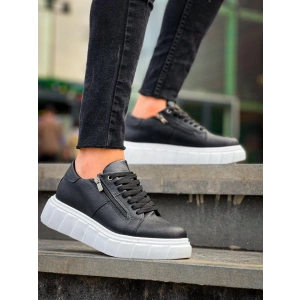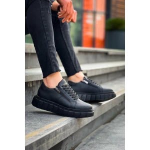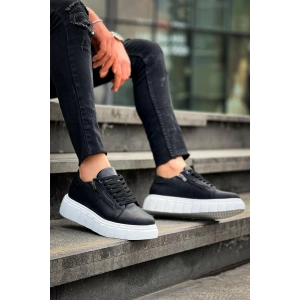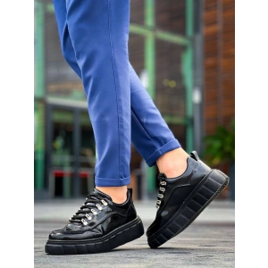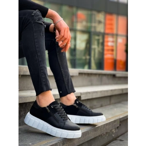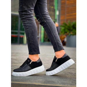 KB-X155 Kuback Siyah Cilt Detaylı Siyah Yüksek Taban Günlük Spor Ayakkabı