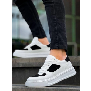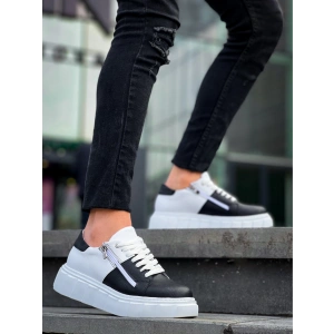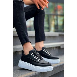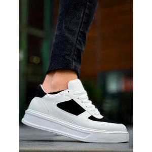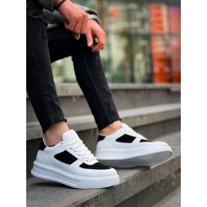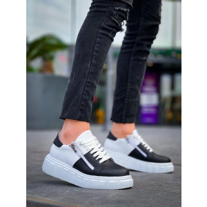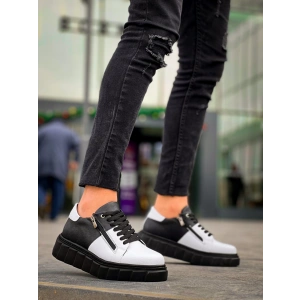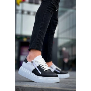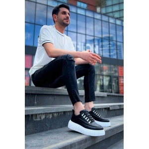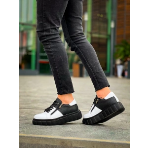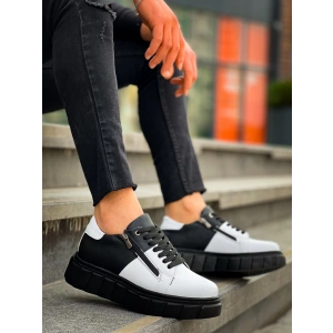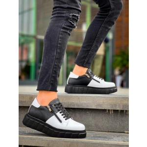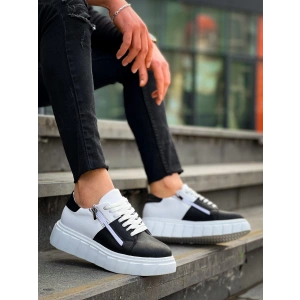KB-X155 Kuback Beyaz Cilt Siyah Cilt Detaylı Siyah Yüksek Taban Günlük Spor Ayakkabı