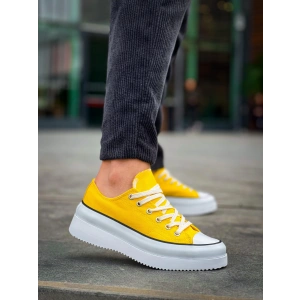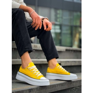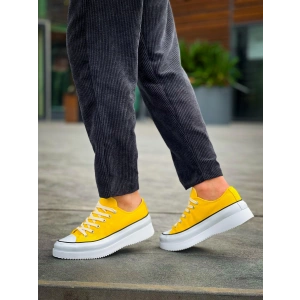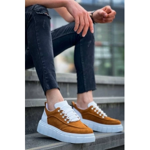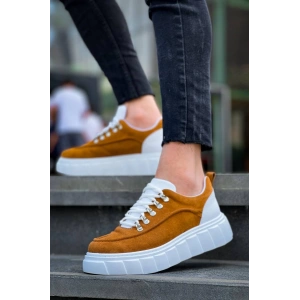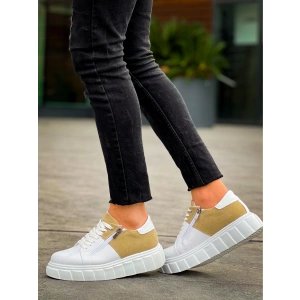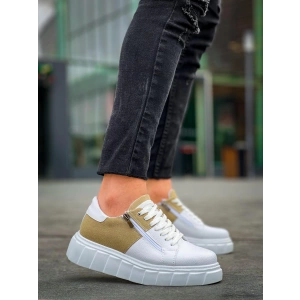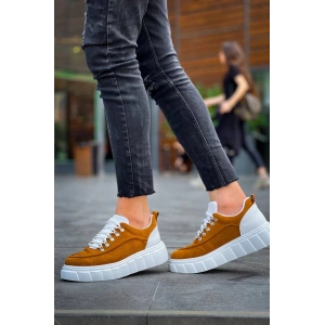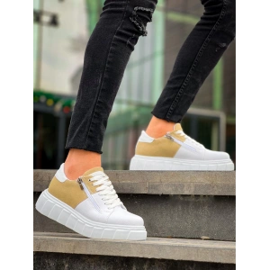 KB-CX-3 Kuback Kısa Sarı Keten Beyaz Yüksek Taban Spor Ayakkabı