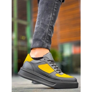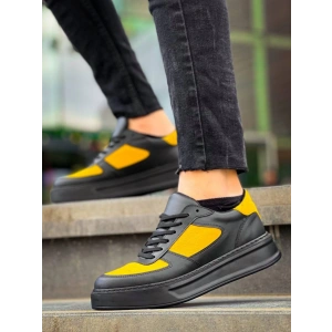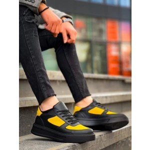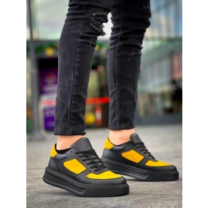 KB-X8 Kuback Siyah Sarı Cilt Yüksek Taban Günlük Spor Ayakkabı