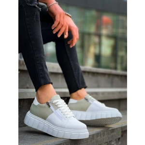 KB-X155 Kuback Beyaz Cilt Gri Süet Detaylı Beyaz Yüksek Taban Günlük Spor Ayakkabı