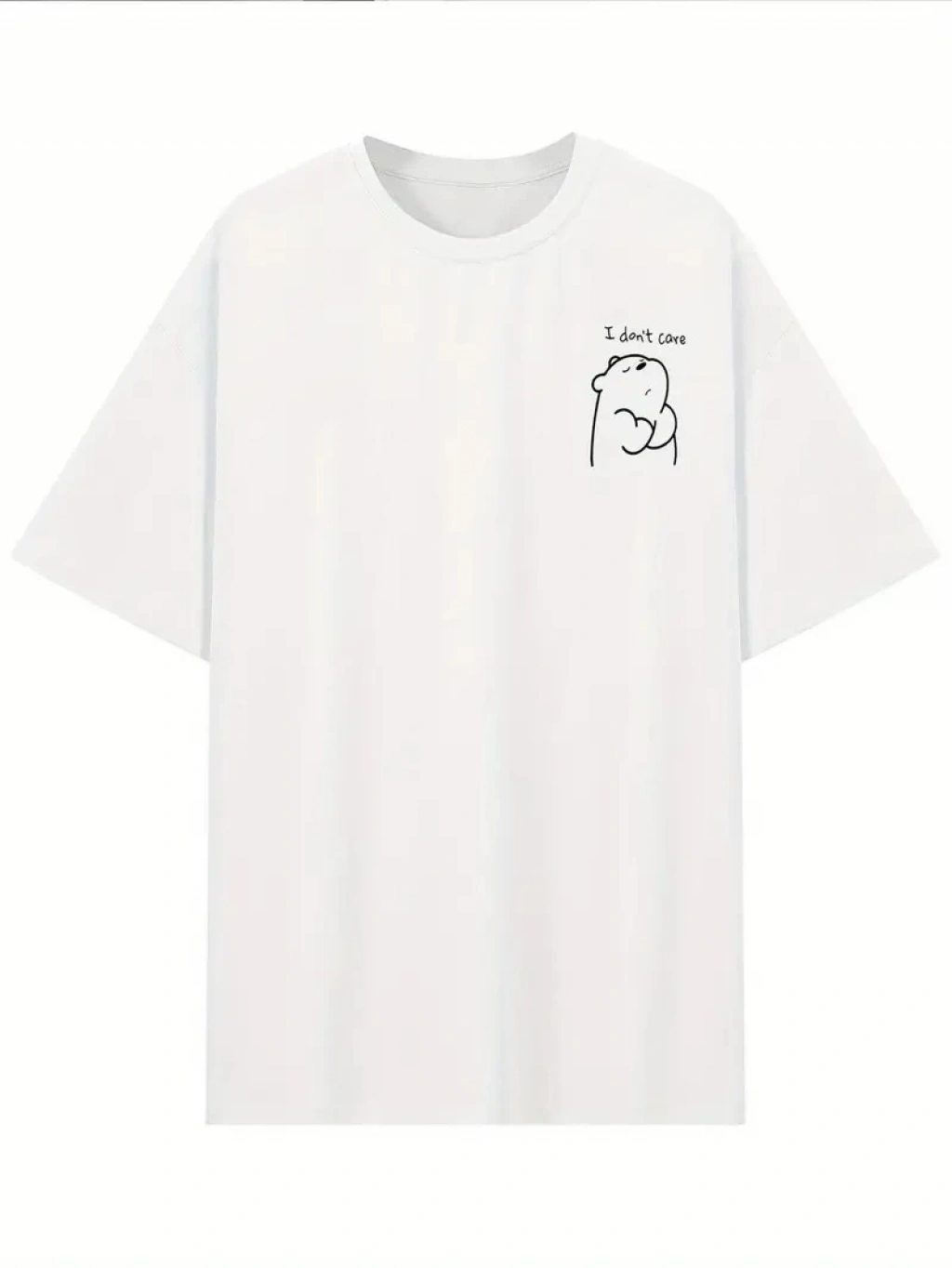 [Günlük T-Shirt] Hafif Kadın Günlük T-Shirt | Bol Kesim, Kısa Kollu, Yuvarlak Yaka, Eğlenceli Karikatür Ayı ve "Umrumda Değil" Baskı - Günlük Stil, İlkbahar/Yaz- Siyah