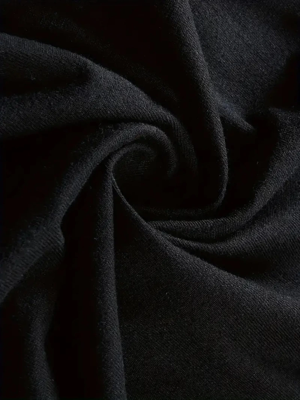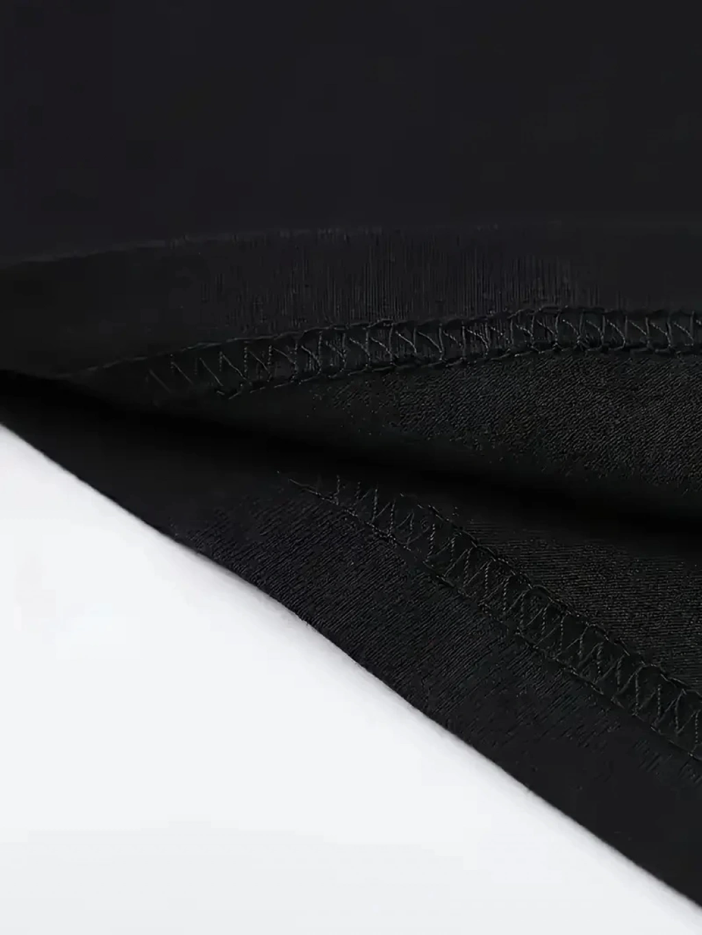 Rahat Bisiklet Yaka Tişört, Yaratıcı Karikatür Baskı - Yumuşak Polyester, Her Mevsim Giyilebilir- Siyah