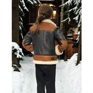 ÇOCUK YAKALI PARÇALI KÜRK - KAHVE