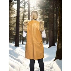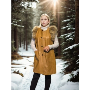 KADIN KOLSUZ HAKİKİ DERİ KÜRK - HARDAL