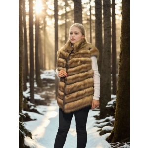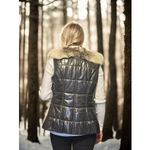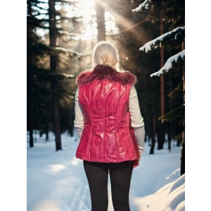 KADIN KOLSUZ HAKİKİ YELEK - FUŞYA