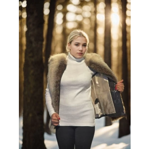 KADIN KOLSUZ HAKİKİ DERİ KÜRK - BEYAZ
