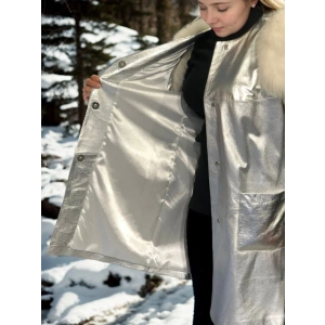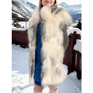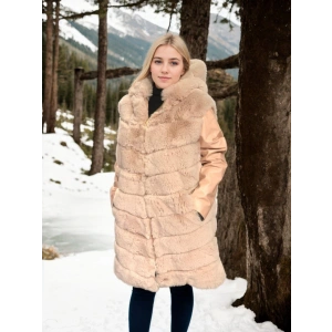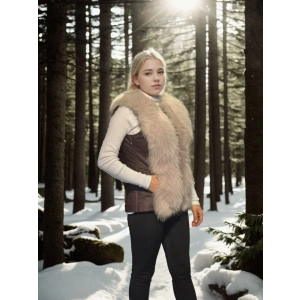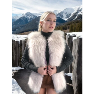 Kadın Fermuarlı Koyun Derisi Tilki Kürkü - Beyaz