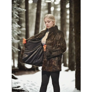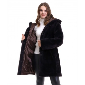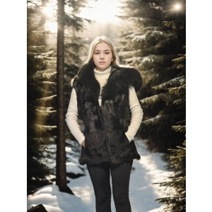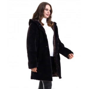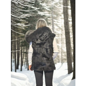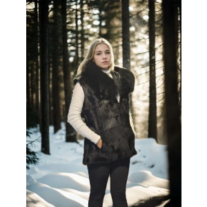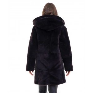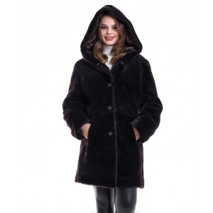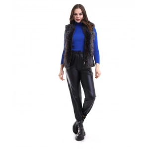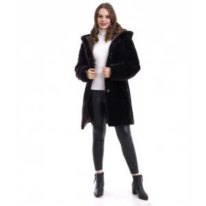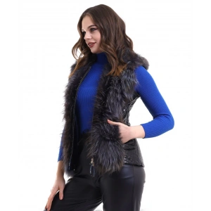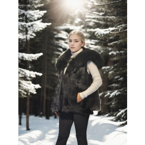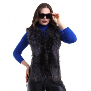 Kadın Fermuarlı Koyun Derisi Tilki Kürkü - Siyah