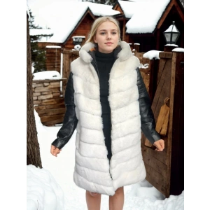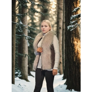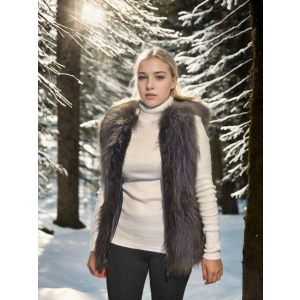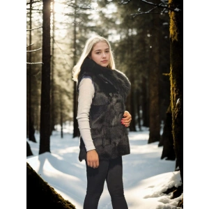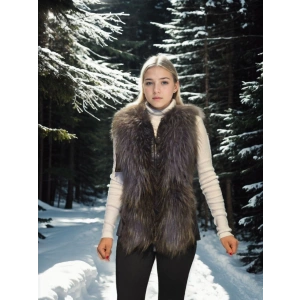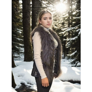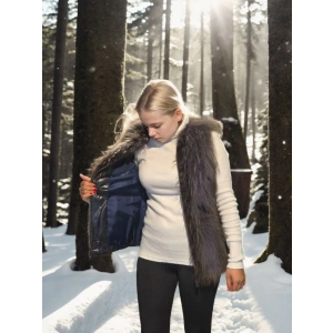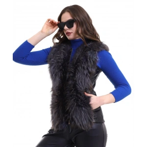 Kadın Kolsuz Hakiki Deri Kürk - Gri