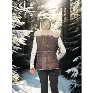 Kadın Kolsuz Fermuarlı Yelek - Kahve