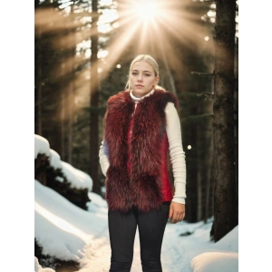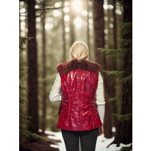 Kadın Kolsuz Fermuarlı Yelek - Kırmızı