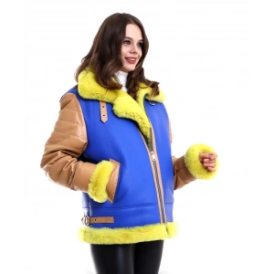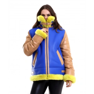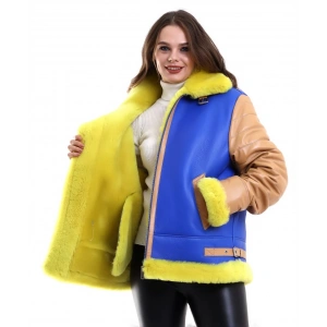 Kadın Koyun Derisi Pilot Hakiki Kürk - Sarı