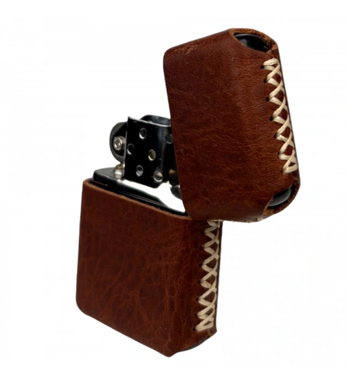 Handmade El Yapımı Hakiki Deri Zippo Modeli Çakmak - AG02001 - Tobacco