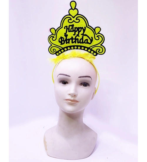 Happy Birthday Neon Sarı Renk Doğum Günü Tacı 24x15 cm