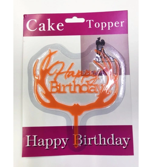 Happy Birthday Yazılı Turuncu Dallı Pasta Kek Çubuğu