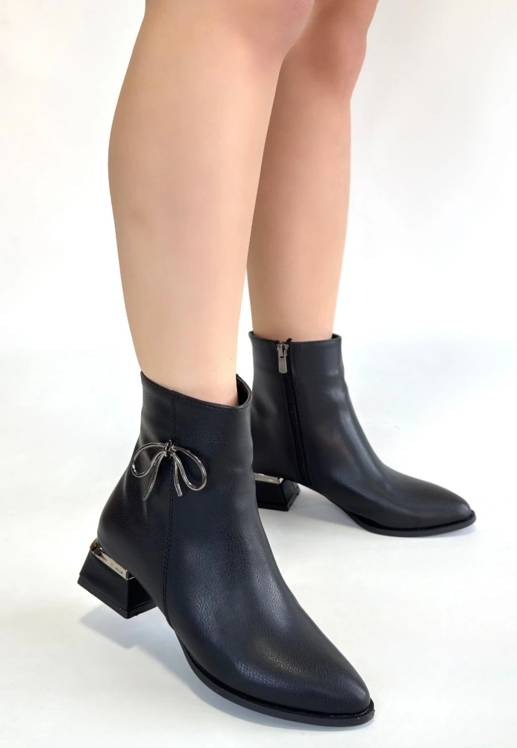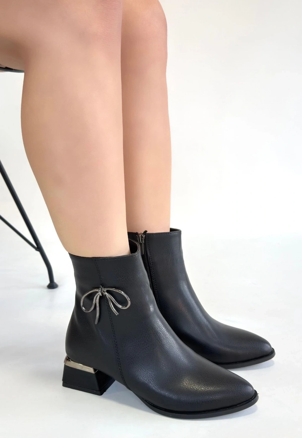 Jones Siyah Cilt Bağcıklı Topuklu Bot