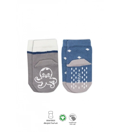 Hayvan Figürlü Kaymaz Erkek Soket Çorap 2'Li BS10119 İndigo