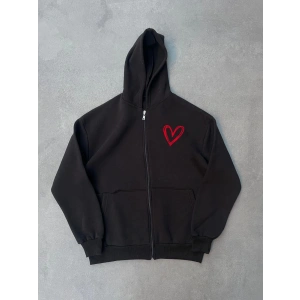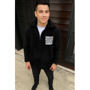 ÜÇ İPLİK BASKILI FERMUARLI KAPÜŞONLU HIRKA - SİYAH