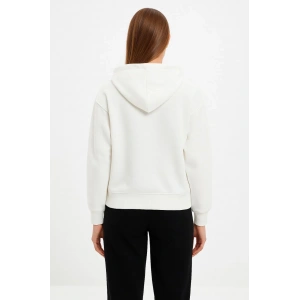 KADIN KAPÜŞONLU 3 İPLİK ŞARDONLU ÖNÜ BASKILI FERMUARLI OVERSİZE SWEATSHİRT - BEYAZ