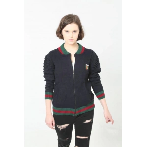 KADIN TAM FERMUARLI TRİKO HIRKA - LACİVERT