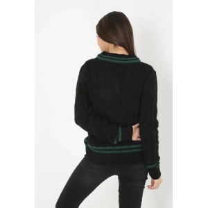 KADIN V YAKA ÖRGÜLÜ KAZAK - SİYAH