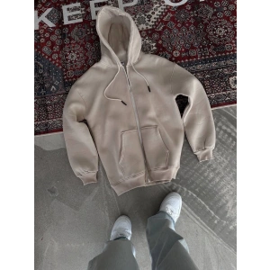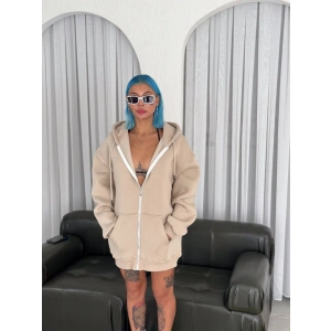 OVERSİZE TAM FERMUARLI UZUN KOL HIRKA - BEJ