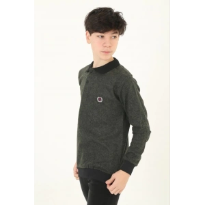 ÇOCUK SELANİK YAKA NAKIŞLI KAZAK - HAKİ