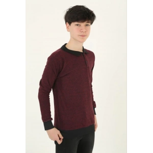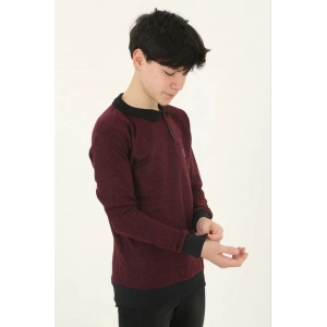 ÇOCUK SELANİK YAKA NAKIŞLI KAZAK - KIRMIZI