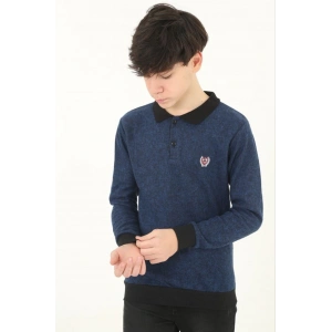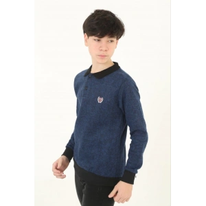 ÇOCUK SELANİK YAKA NAKIŞLI KAZAK - LACİVERT