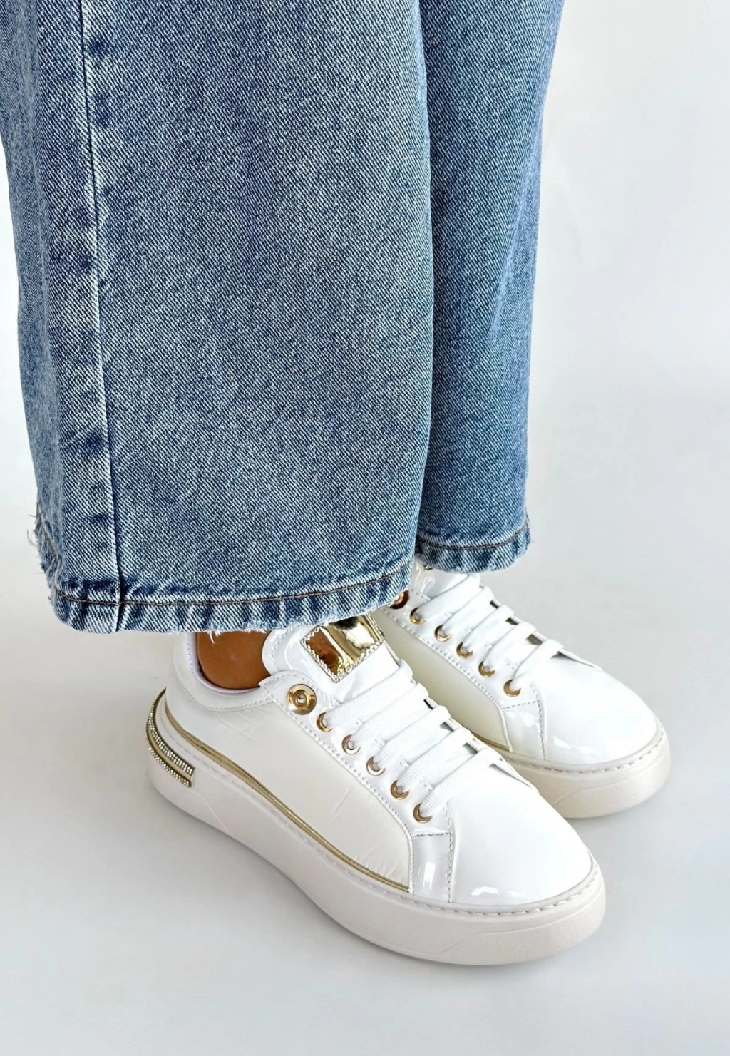 • Hley Beyaz Rugan Paraşüt Detaylı Bağcıklı Spor Ayakkabı