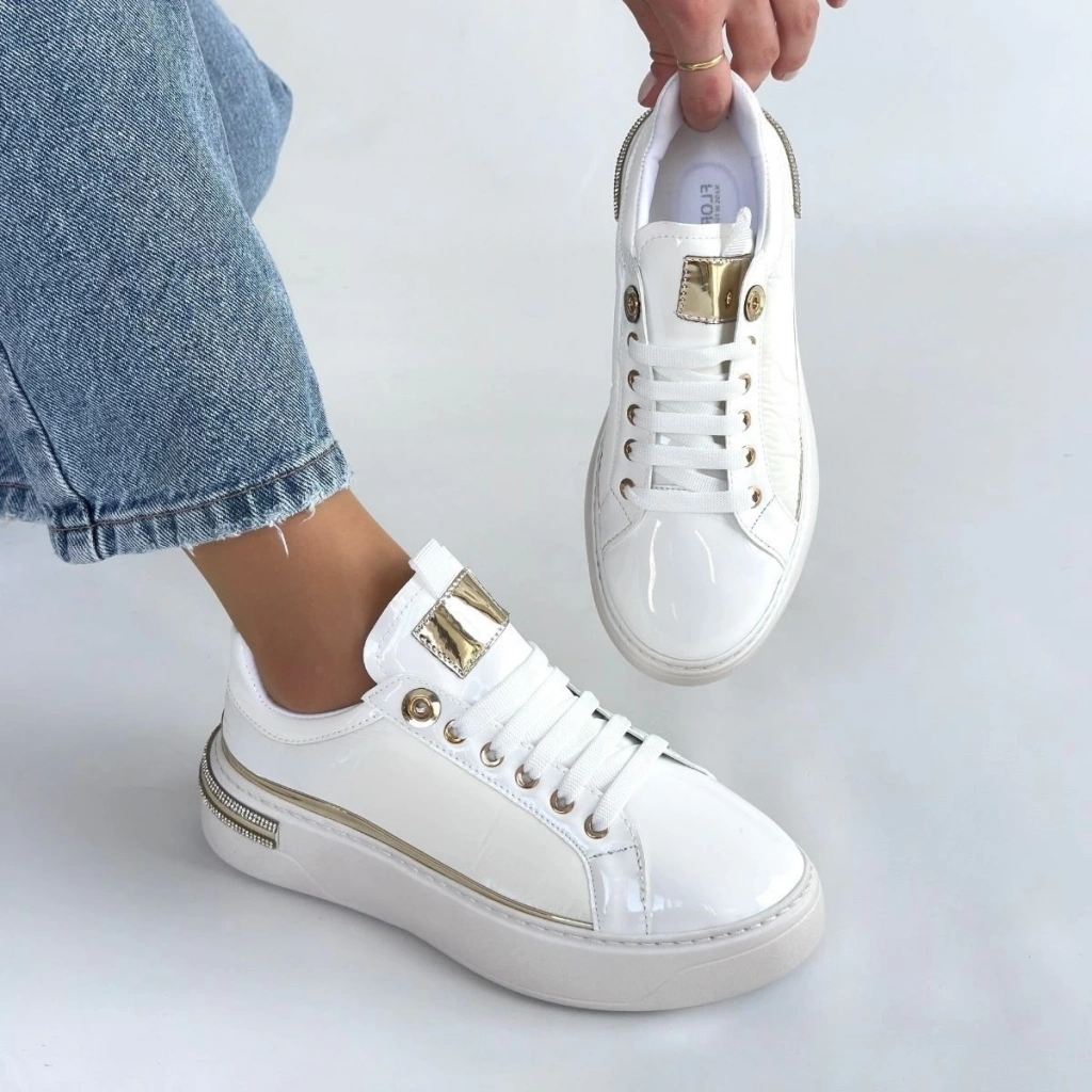 Hley Beyaz Rugan Paraşüt Detaylı Bağcıklı Spor Ayakkabı