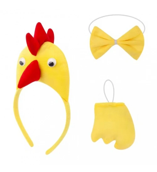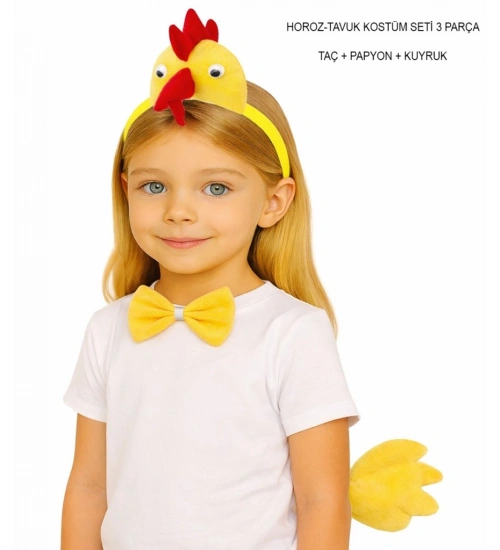 Horoz – Tavuk Kostüm Aksesuar Seti - Taç Papyon Kuyruk