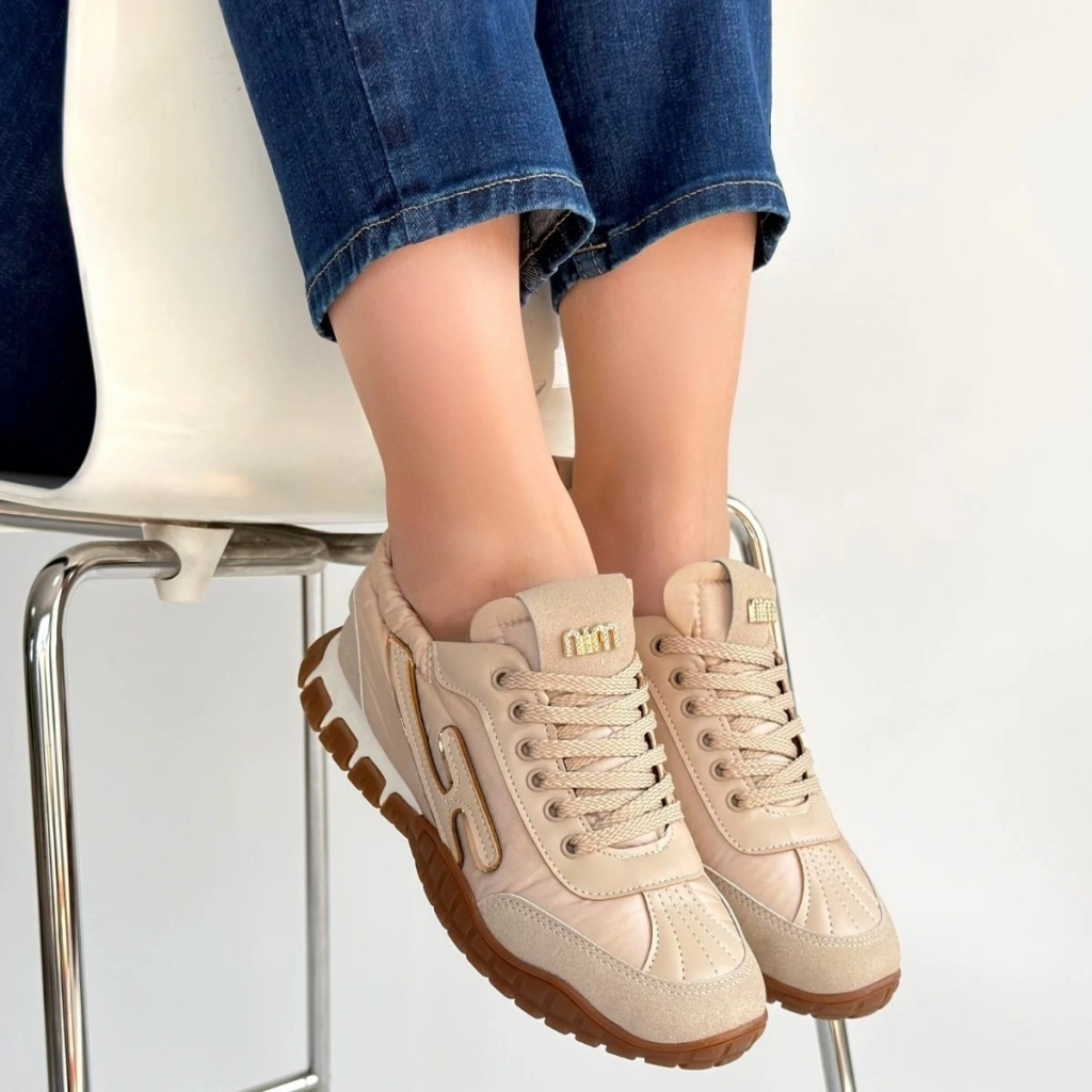 Renji Bej Triko Bağcıklı Spor Ayakkabı