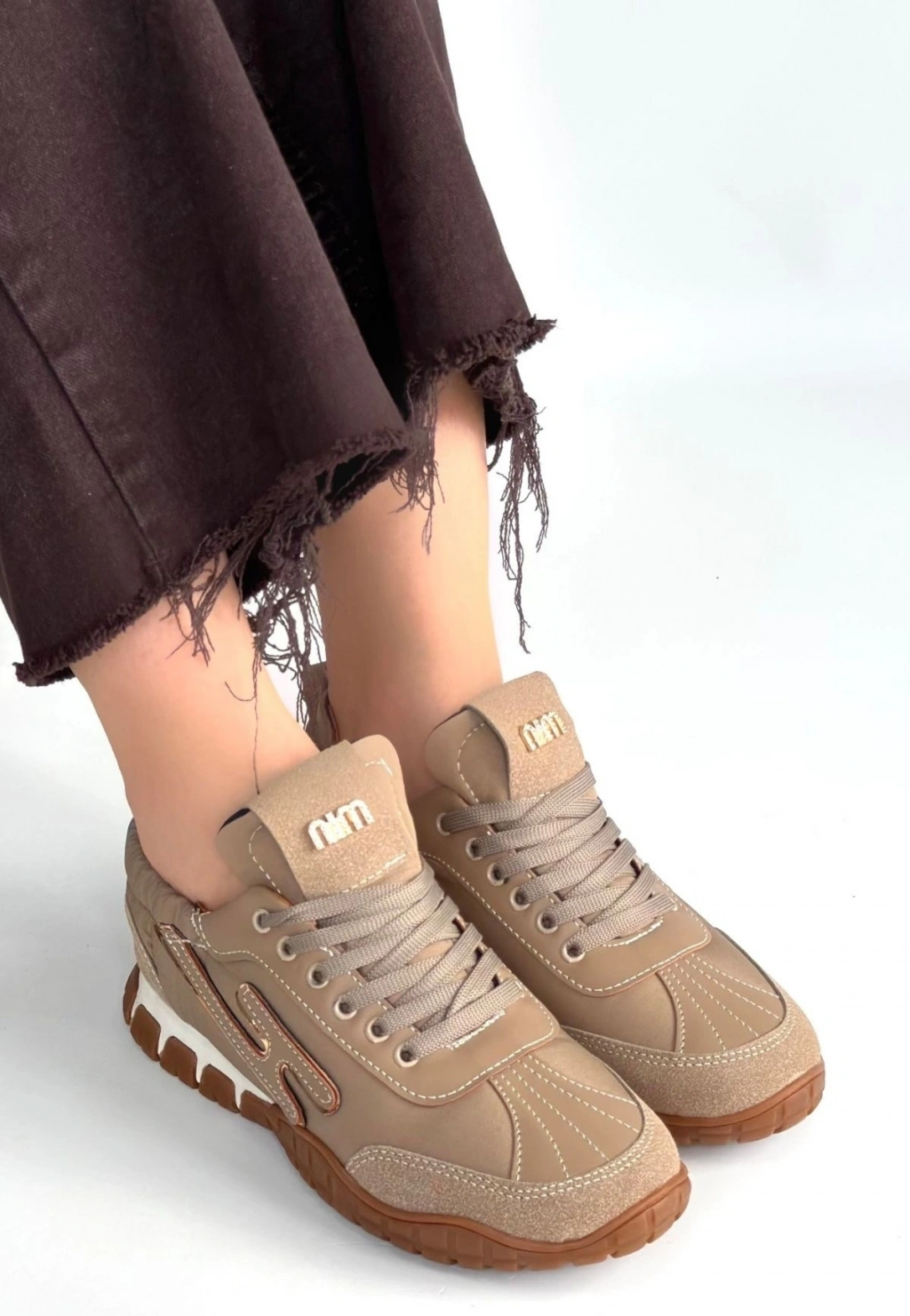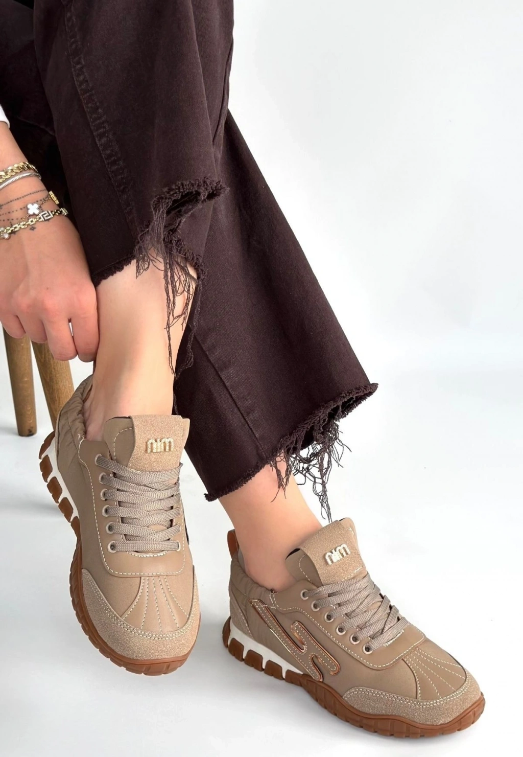 Geja Bej Cilt Bağcıklı Spor Ayakkabı